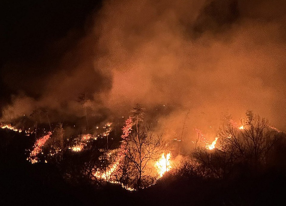 → 산림이 빽빽하고, 경사가 급해 진화가 어려움 - 야간 진화의 어려움