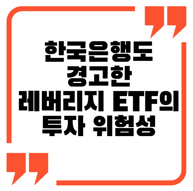 최근 한국은행은 레버리지 ETF에 투자하는 국내 개인 투자자들의 행동에 대해 공식 경고를 발표했습니다. 이는 단순한 '시장 과열' 우려를 넘어, 실질적인 투자 손실 위험을 경고한 것입니다.